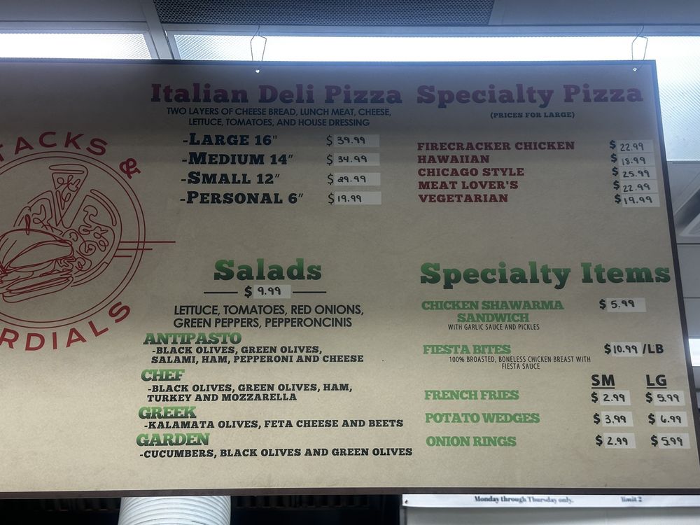 The Cordial Shoppe, located in Taylor, MI, is a sandwich lover's paradise offering a variety of delicious menu items. From fresh salads like the Antipasto and Greek Salad to mouth-watering oven-baked subs such as the Belleville Bourbon and Italian Sub, there is something for everyone. The Italian Deli Pizza is a must-try, packed with flavorful ingredients. The Cordial Shoppe also provides a range of amenities including takeout, delivery, and catering options, making it a convenient choice for any occasion. With a welcoming atmosphere and attentive service, this eatery is perfect for families, groups, or anyone looking to enjoy a satisfying meal. Don't forget to stop by and experience the delicious offerings at The Cordial Shoppe.